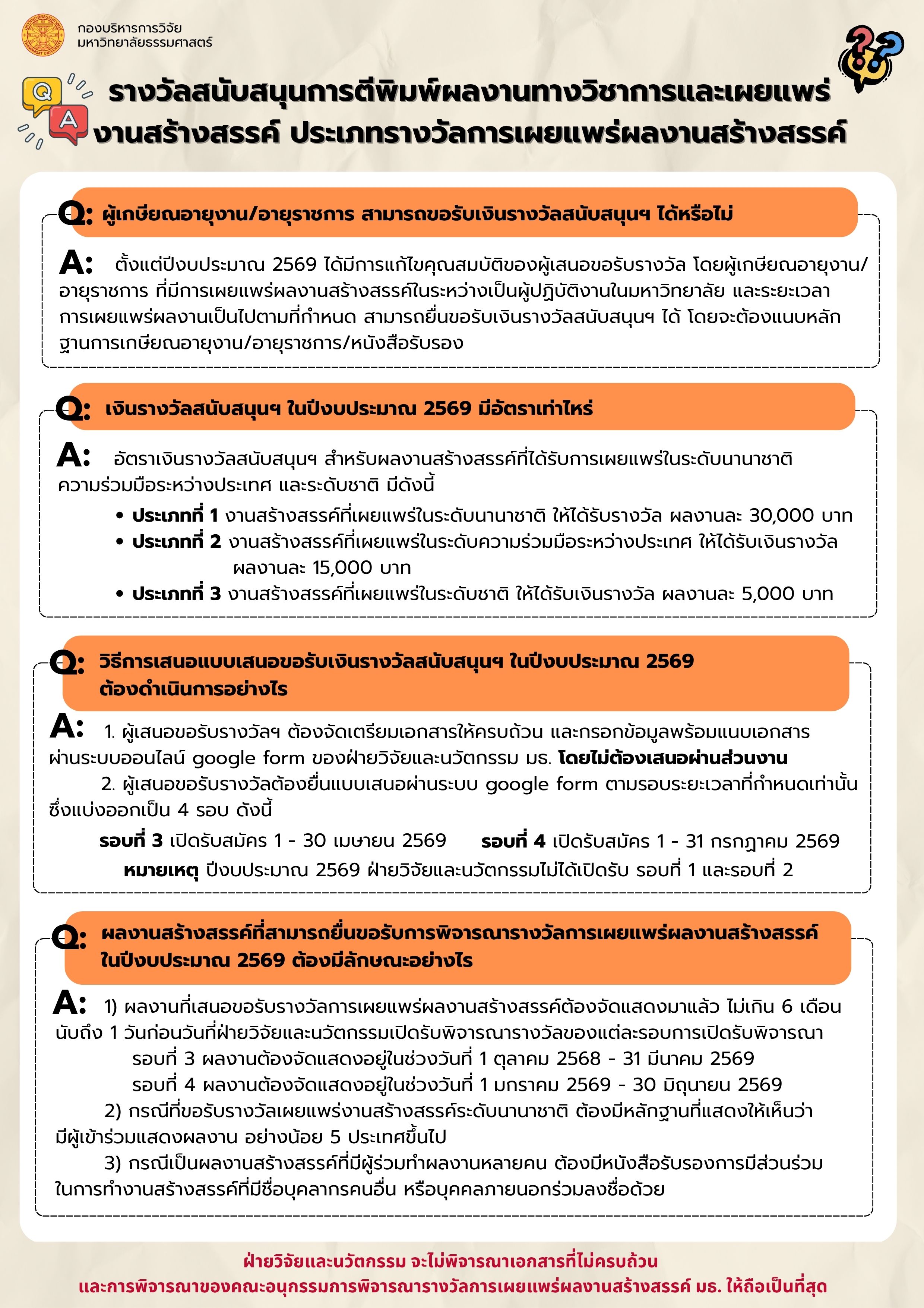 รางวัลสนับสนุนการตีพิมพ์ผลงานทางวิชาการและเผยแพร่งานสร้างสรรค์ประเภทรางวัลการเผยแพร่ผลงานสร้างสรรค์