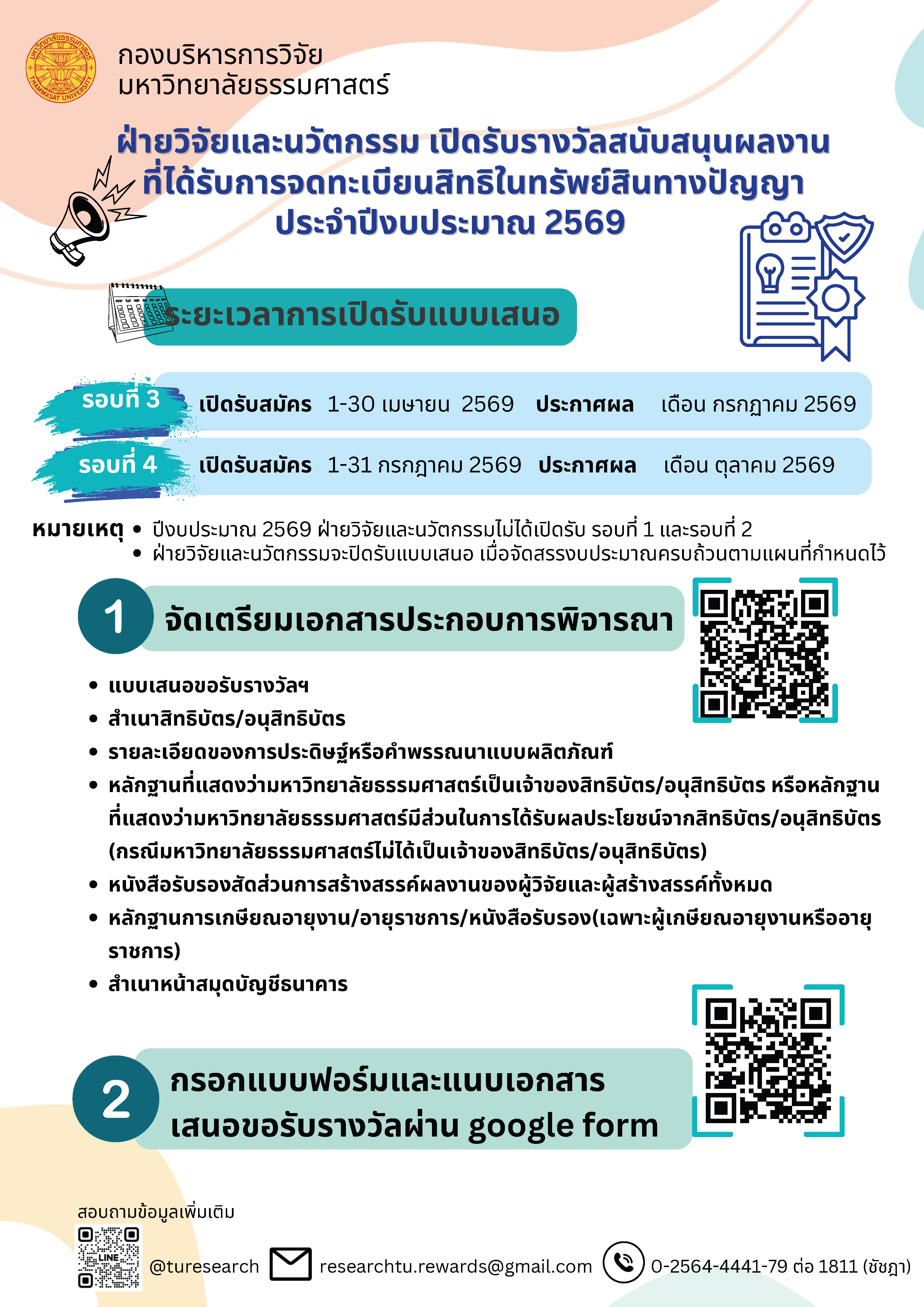 รางวัลสนับสนุนผลงานที่ได้รับการจดทะเบียนสิทธิในทรัพย์สินทางปัญญา