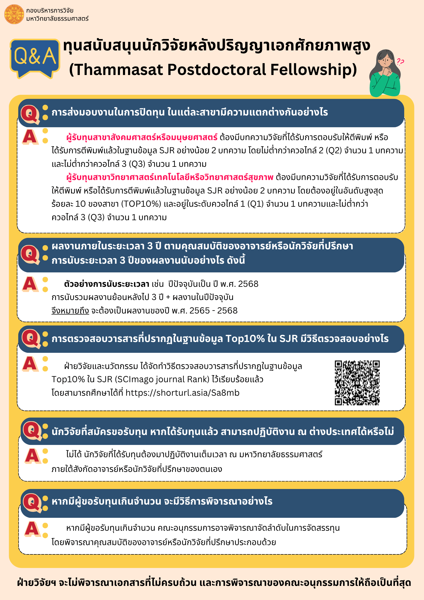 แนวทางการดำเนินงานทุนสนับสนุนนักวิจัยหลังปริญญาเอกศักยภาพสูง (Thammasat Postdoctoral Fellowship)