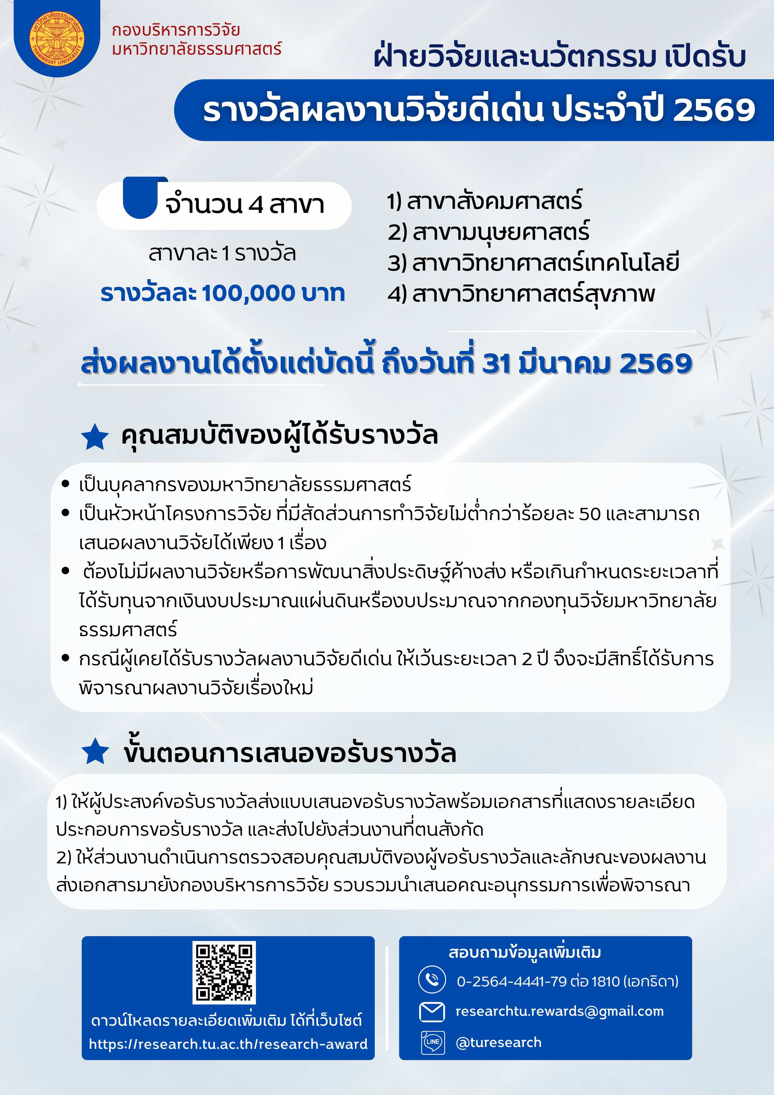 ประกาศผลการพิจารณารางวัลผลงานวิจัยดีเด่น ประจำปี 2568